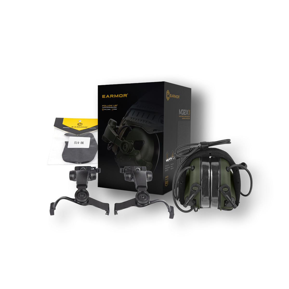 Upgrade your tactical setup with the EARMOR® M32X PLUS Tactical Communication Helmet Headset, which includes the EARMOR® M32 PLUS Tactical Communication Headset, EARMOR® M16A Helmet Headset Rail Mount Kit, and EARMOR® S14 Tactical Headset Attachment Velcro. This all-in-one package provides everything you need to mount your communication system and hearing protection directly onto your helmet.